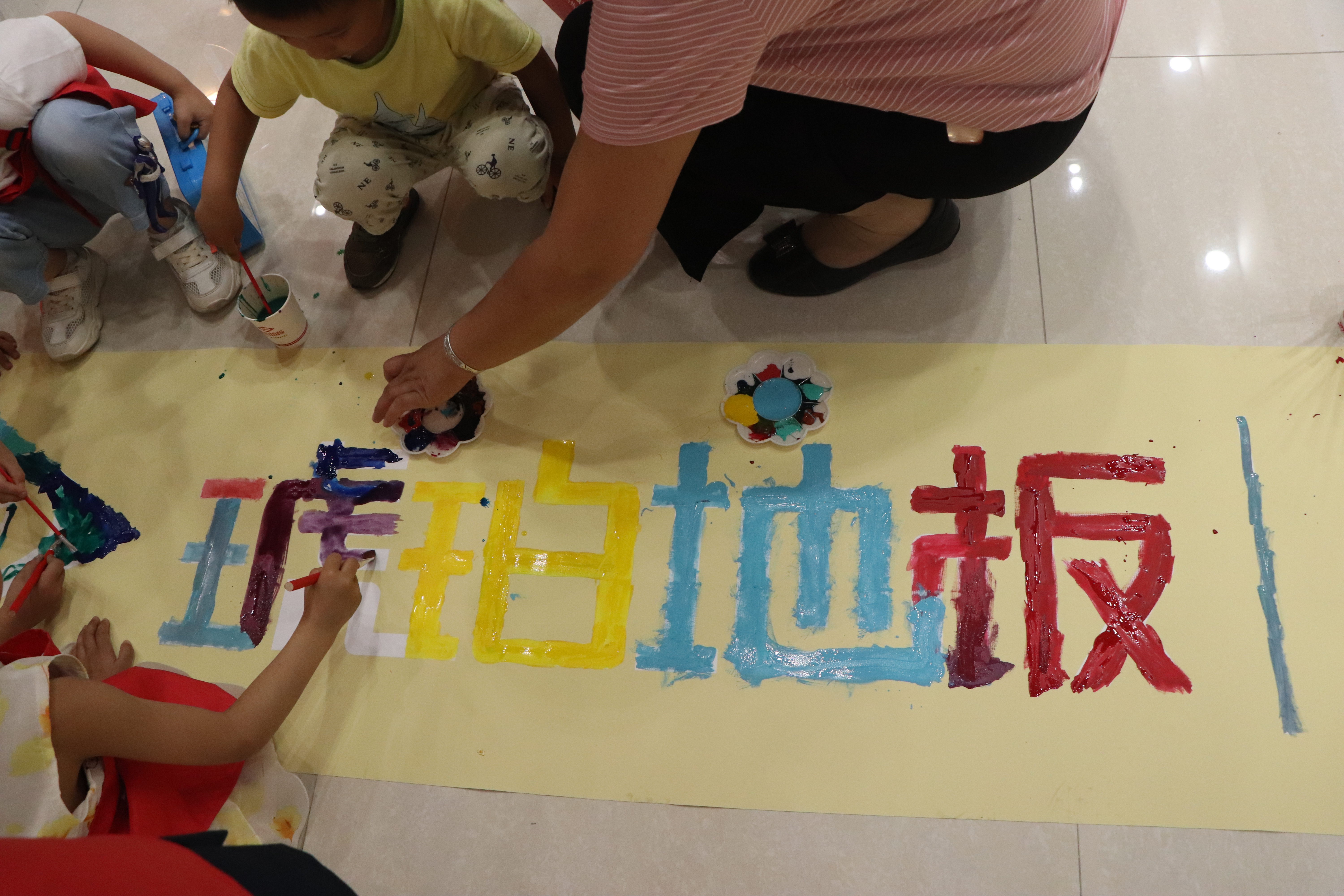 本次畫板全部由琥珀木地板定制而成,木板平滑、結實,供小朋友們在上面鋪紙繪畫。