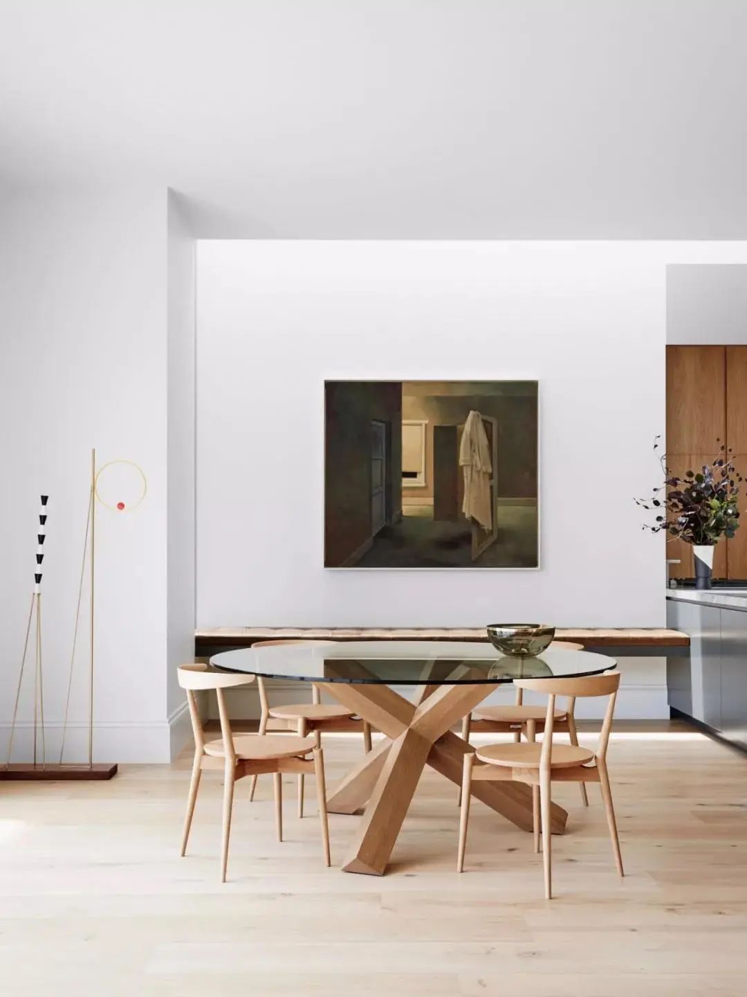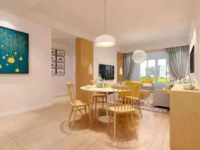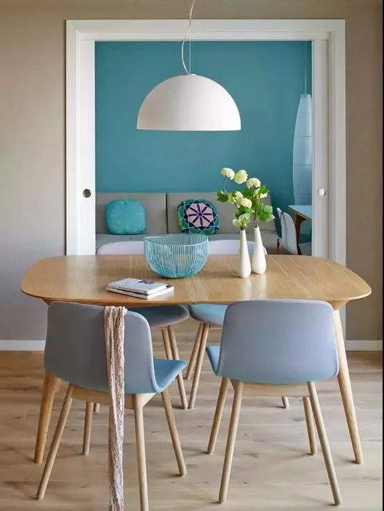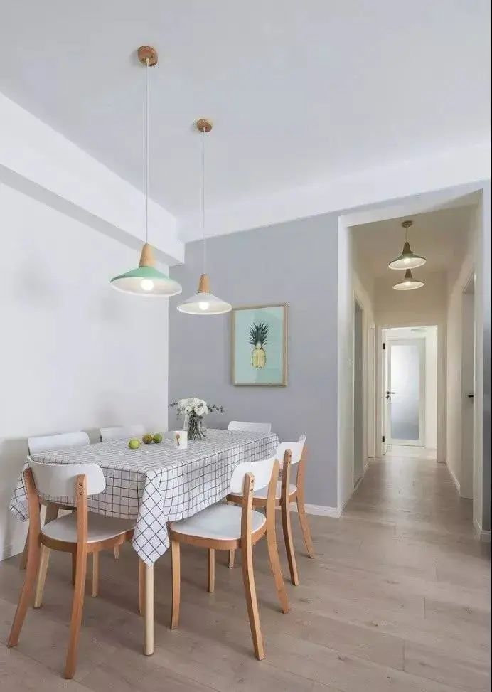 北歐風的淺色系地板,是潔癖者的福音,都說潔癖愛清爽,愛的大概就是簡單、通透、明亮的色調。淺色系地板,能夠很好的拉伸空間,搭配清涼活潑的原木色餐椅,營造出和諧溫馨的就餐氣氛。