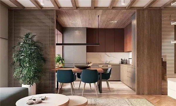 與木質(zhì)吊頂遙相呼應(yīng)