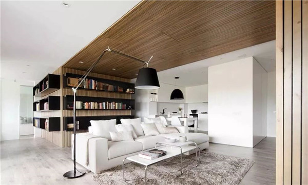 純粹的木地板,運(yùn)用于頂部,打破了原有的界限,以另外一種形式出現(xiàn)在家裝中,帶給年輕人不一樣的觀感與格調(diào)!