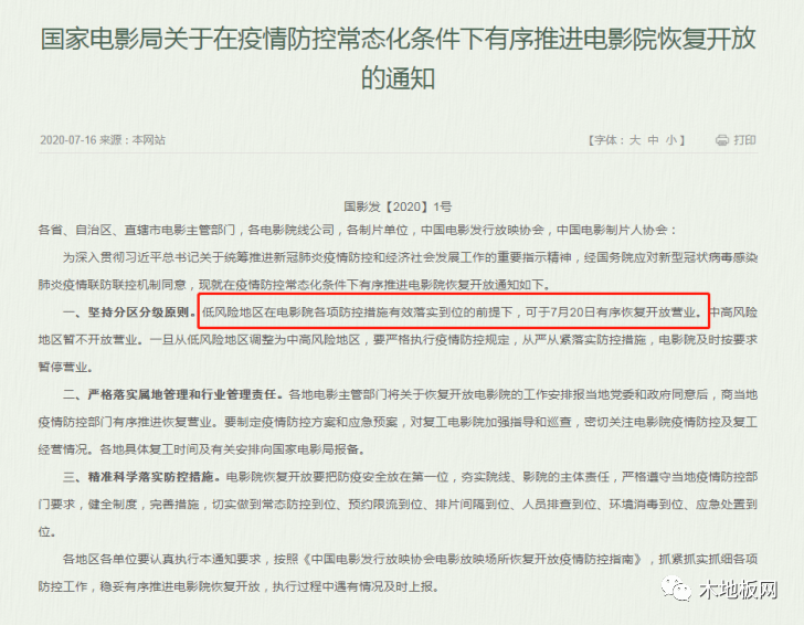 7月16日,國家電影局發(fā)布了這樣一條通知:低風險地區(qū)在電影院各項防控措施有效落實到位的前提下,可于7月20日有序恢復開放營業(yè)。