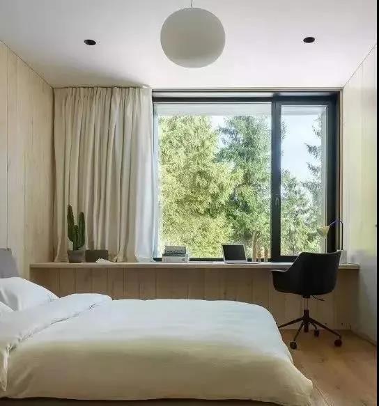 飄窗的巧妙設計極簡而舒適卻讓臥室多出了辦公區域在愜意時光中繼續未完的工作