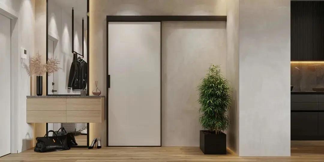 玄關(guān)的設(shè)計(jì)是水泥灰極簡(jiǎn),
