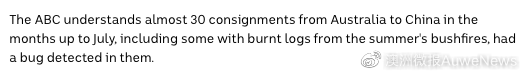 此外ABC還表示今年截至7月,從澳大利亞運往中國的近30批貨物里發現了樹皮甲蟲。