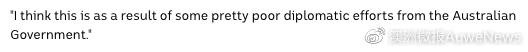 而來自澳大利亞建筑、林業、海事、采礦和能源工會(CFMMEU)事業部副主席布拉德·科茨(Brad Coates)也表示,“我認為這是澳政府做出的相當差的外交努力的結果?!?