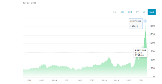 期貨市場的活動更加令人瞠目結舌。3 月份交貨的木材價格類似于比特幣或 GameStop 股票的價格圖表。