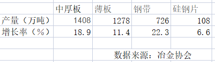 表:2002年1-7月份國內主要板材品種產量及增長情況表