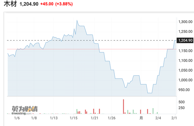 木材期貨價(jià)格再度升溫 2月以來累計(jì)上漲近30%