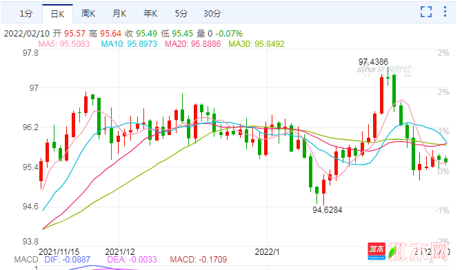 1、根據批木網行業研究部的跟蹤報告,2月以來,美元指數持續下跌,從1月28日最高點97.4386跌至2月4日的95.1353,截止發稿前仍在95.4482低位徘徊,從近期最高點起算短短幾天最大跌幅已接近2.36%。美元走弱意味著大宗商品的強勢。
