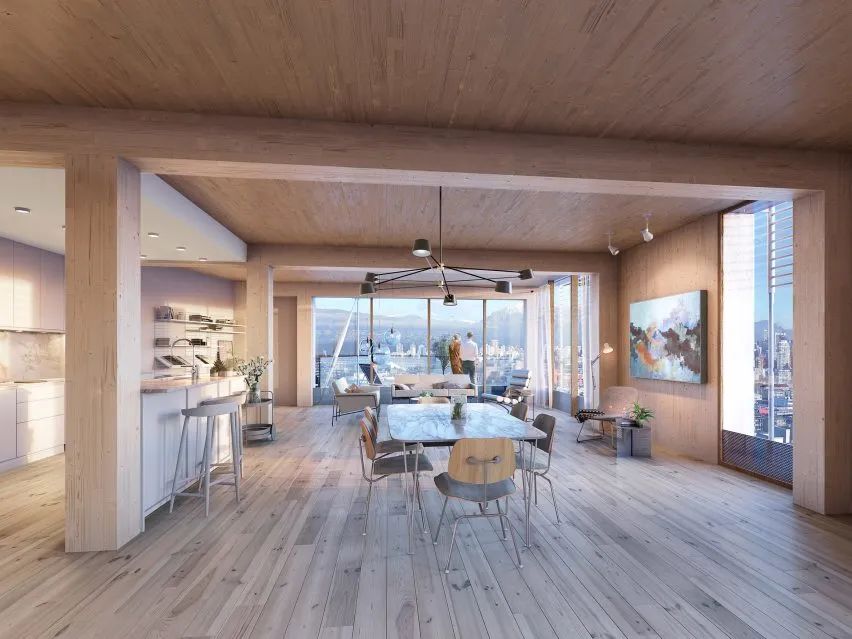 該建筑的能源效率和對木材的大量使用將大大減少二氧化碳的排放,同時展示了更加氣候友好的高密度城市生活的選擇。